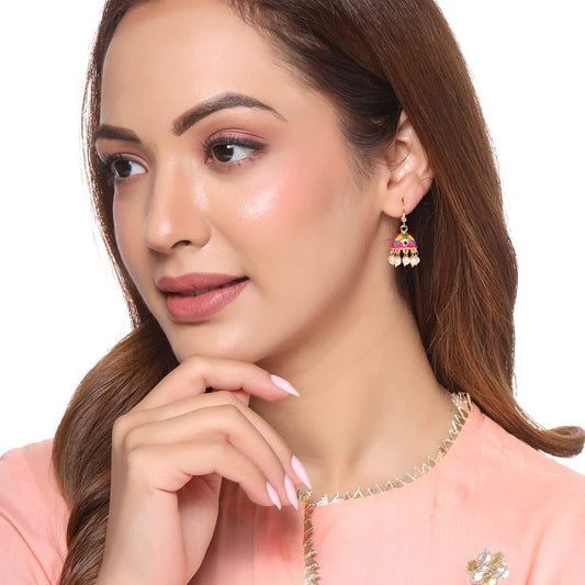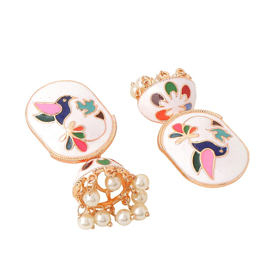 Earrings for Women and Girls White Meenakari Jhumka | Gold Plated Jhumki Earrings | Birthday Gift for girls and women Anniversary Gift for Wife