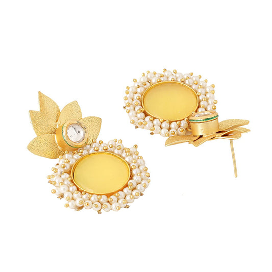 Meenakari Jhumka Earrings for Women Gold Plated Yellow Meenakari Flower Pearl Jhumka Earrings for Women and Girls