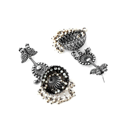 Earrings for Women and Girls Traditional Silver Oxidised Jhumka|German Silver|Peacock Designed Jhumki Earrings|Birthday Gift For girls and women Anniversary Gift for Wife