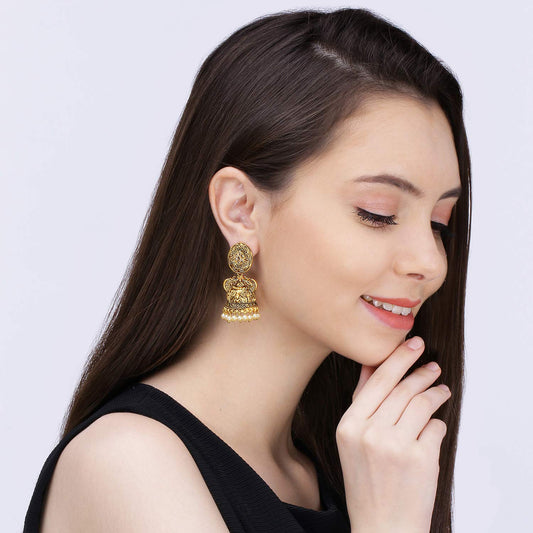 Traditional Jhumki Earrings Temple Jewellery Oxidized Matte Gold Plated Artistic Crafted Durga Design Jhumka Earrings for Women & Girls