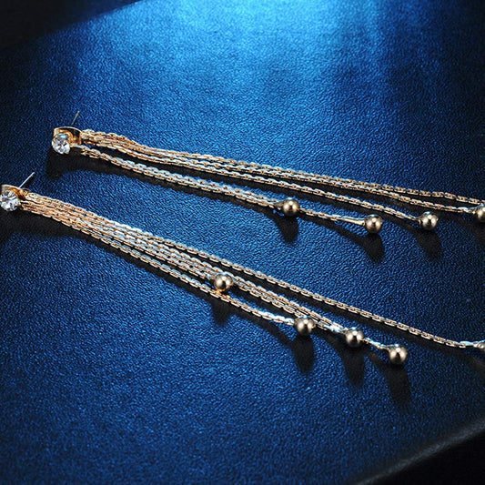 Danglers Earrings for Women Thread Hangings Gold Chandelier Long Chain Earring for Women and Girls