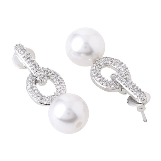 Earrings For Women Silver Toned Crystal Floral Designed Pearl Drop Earrings For Women and Girls