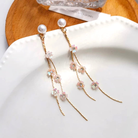 Earrings For Women Gold Tone Pearl Stud Linear Chain Crystal Studded Tassel Dangler Earrings For Women and Girls
