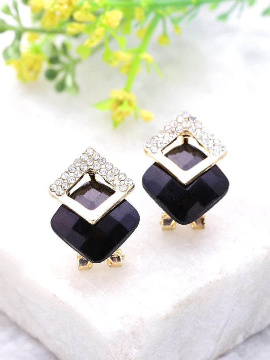 Stud Earrings for Women Black Crystal Earrings Elegant Gold Plated Crystal Square Stud Earrings for Women and Girls.