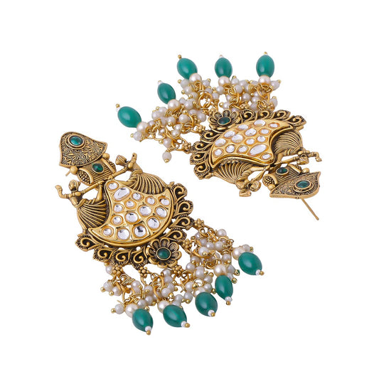 Earrings for Women and Girls Kundan Earrings | Danglers Earrings for Women Gold Plated Peacock Shaped Long Earrings | Birthday Gift for girls and women Anniversary Gift for Wife