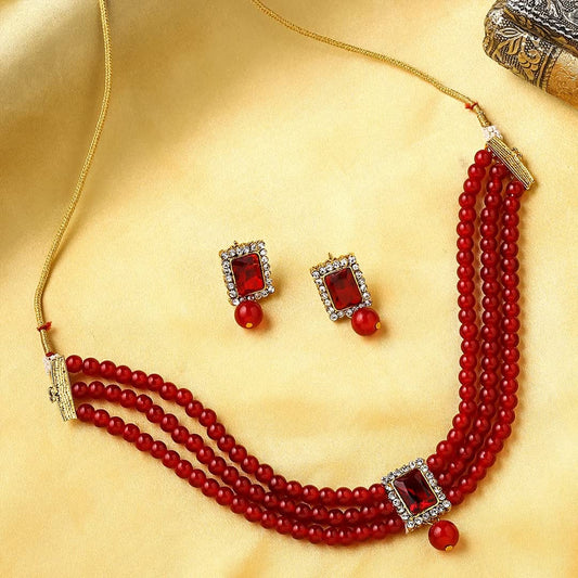 Jewellery Set for Women and Girls Traditional 2 Set of Beads Choker Set for Women | Gold Plated Choker Necklace Set | Birthday Gift for girls & women Anniversary Gift for Wife