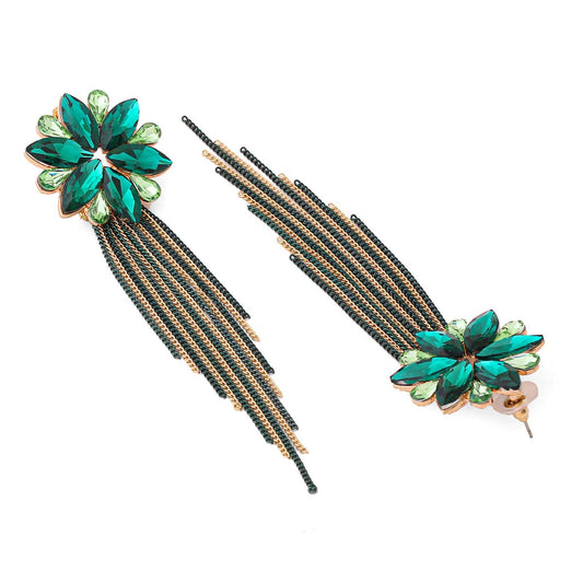 Crystal Danglers Earrings for Women Floral Shaped Crystal Green Long Chain Dangler Earrings for Women and Girls