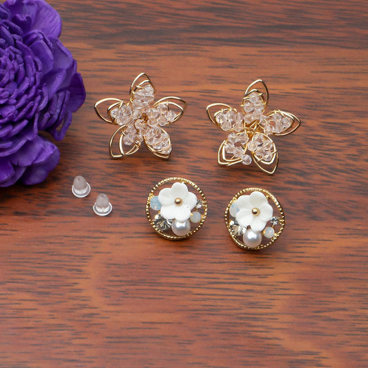 Earrings for Women and Girls Crystal Studs | Gold Tone Combo of 2 Pairs Floral Designed Stud Earrings | Birthday Gift for girls and women Anniversary Gift for Wife