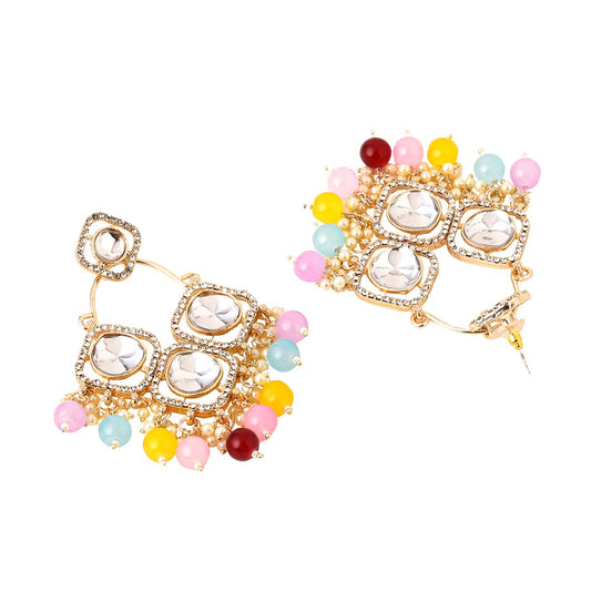 Earrings for Women Gold Toned Kundan Studded Green and Pink Beads Drop Chandbali Earrings for Women and Girls