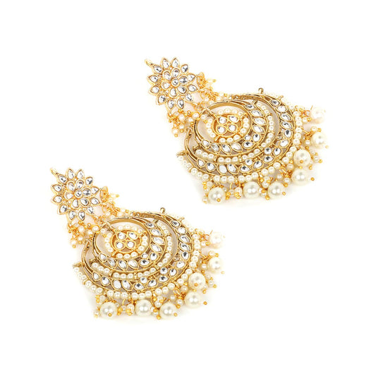 Ethnic Gold Plated Traditional Kundan Studded Flower Design Beads Chandbali Earrings for Women and Girls, Medium (YCTJER-08KUDCHD-GL)