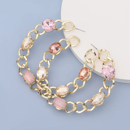 Earrings for Women and Girls Fashion Golden Hoops | Gold Plated Multicolor Crystal Studded Big Circle Hoop Earrings | Birthday Gift for girls and women Anniversary Gift for Wife