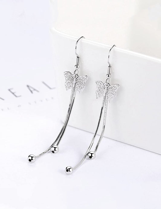 Earrings for Women and Girls Silver Dangler Earrings | Silver Toned Butterfly Long Chain Danglers Earrings for Women | Birthday Gift for girls and women Anniversary Gift for Wife