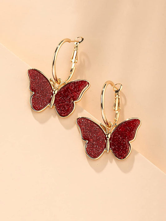 Hoop Earrings for Women Fashion Red Butterfly Shaped Hoops Earrings Set | Gold Plated Big Hoops Bali Earrings for Girls | Birthday Gift for Girls & Women Anniversary Gift for Wife