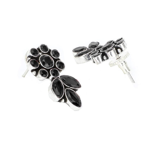Stud Earrings for Women Ethnic Silver Oxidised Earrings Black Floral & Leaf Traditional Stud Earrings for Women And Girls.