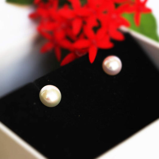 Original Freshwater Button Pearl 925 Sterling Silver Hallmark and Certified Purity Studs Earrings for Women and Girls