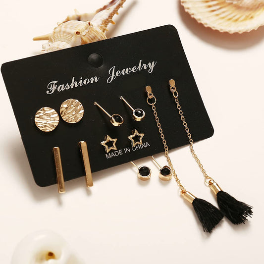 6 and 9 Pairs Assorted Multiple Stud Earrings Big Hoop Tassel Drop Pearl Earrings for Women and Girls (Stud And Chandbali Combo Earring)