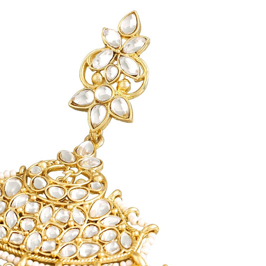 Danglers Earrings for Women Traditional Gold Plated Studded White Stone Ethnic Dangler Drop Earrings for Women and Girls