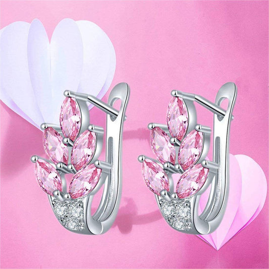 Crystals from Swarovski Leafy Fashion Rhodium Plated Pink Crystal Clip On Earrings for Women and Girls