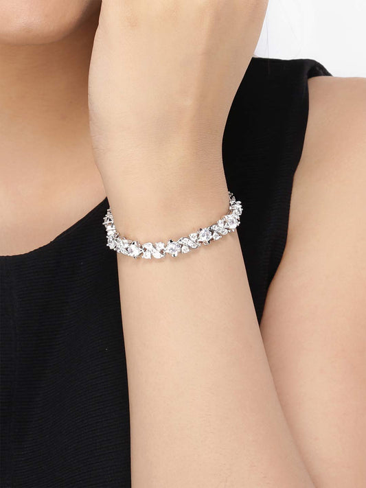 Valentine Gift for Girls Bracelet for Women and Girls | White Crystal Bracelets for Women Silver Toned Cubic Zircon Bracelet | Birthday Gift for Girls & Women Anniversary Gift for Wife