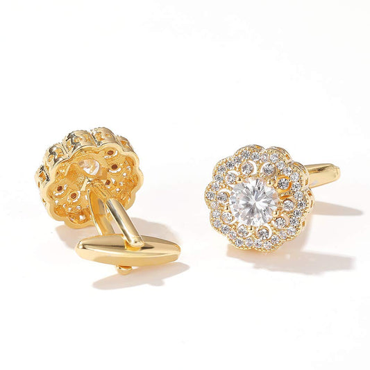 Exclusive Collection Stainless Steel Crystal Studded Floral Designer Cuff Links for Men