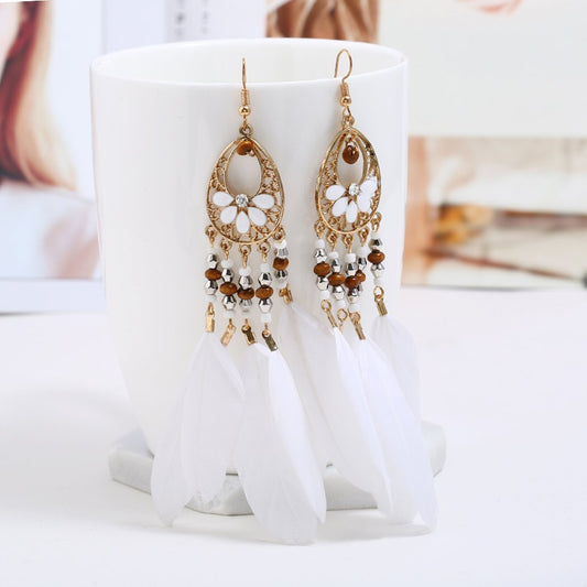 Classic Beauty White Swan Feather Tassel Earrings for Women & Girls (White)