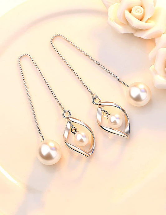 Earrings for Women and Girls White Pearl Dangler | Silver Tone Long Dangler Earrings | Birthday Gift for girls and women Anniversary Gift for Wife
