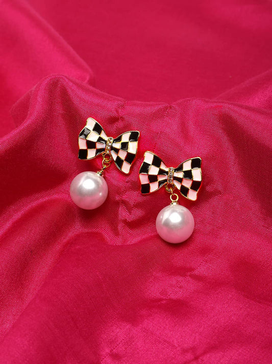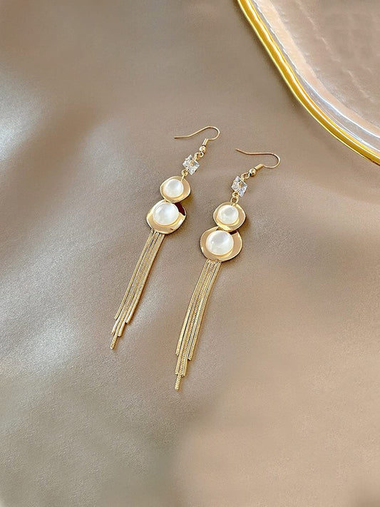 Earrings for Women and Girls Pearl Dangler | Gold Toned White Stone Studded Long Danglers Earrings | Birthday Gift for girls and women Anniversary Gift for Wife