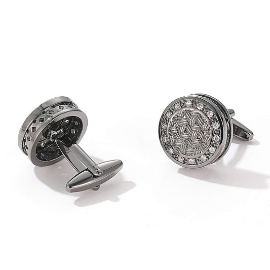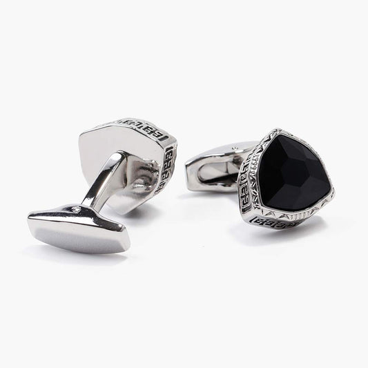 Exclusive Collection Stainless Steel Black Silver Design Cuff Links for Men (Crystal Studded Cuff Links)