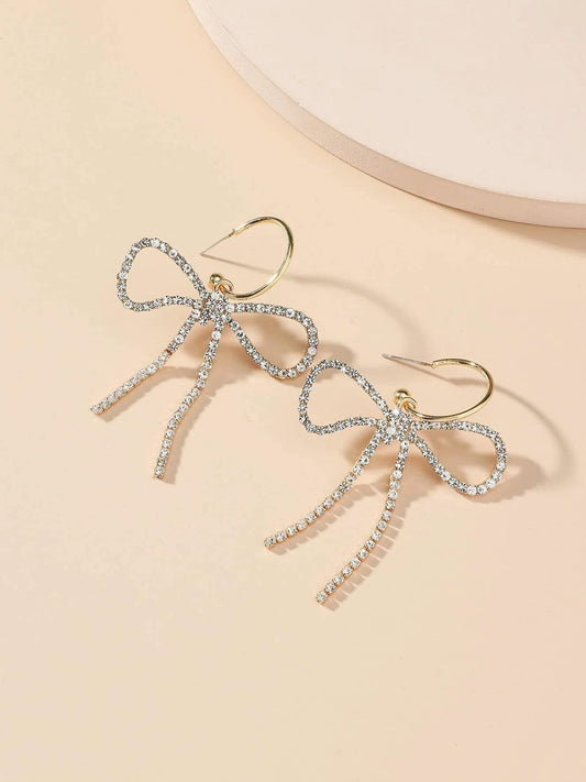 Earrings for Women and Girls Drop Earrings for Girls | Gold Toned Crystal Studded Bow Designed Drop Earrings | Birthday Gift for girls and women Anniversary Gift for Wife