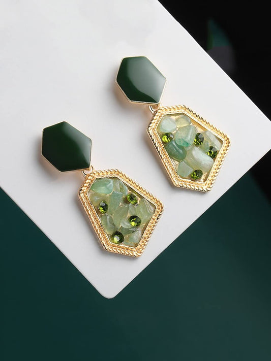 Earrings for Women and Girls Drop Earrings for Girls | Gold Tone Green Stone Studded Geomteric Drop Designed Drop Earrings | Birthday Gift for girls and women Anniversary Gift for Wife