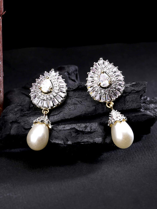 Earrings for Women AD/American Diamond White Earrings 18k Gold Plated HandCrafted Pearl Drop Earrings for Women and Girls