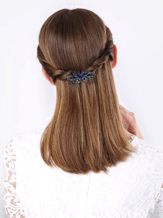 Hair Clips for Women Girls Barrette Hair Clips for Women Hair Accessories for Women Butterfly Clips for Women Blue Crystal French Barrette Hair Clips for Women and Girls Gift For Women & Girls