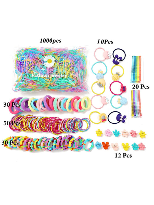 Melbees by Hair Clips for Girls Kids Hair Clip Hair Accessories for Girls Baby's 10 Pcs Hair Pins 10 Pcs Claw Clips With 1090 Pcs Rubber Bands Set for Kids Hairclips for Baby Teens