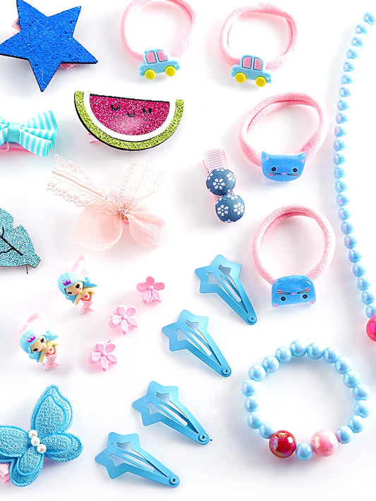 Melbees by Kids Hair Accessories for Girls Hair Accessories Combo Set Blue 10 Pcs Baby Girl's Hair Clips Set Cute Ponytail Holder Claw Clip Bow Clips For Girls Assortment Gift set for Kids Teens Toddlers