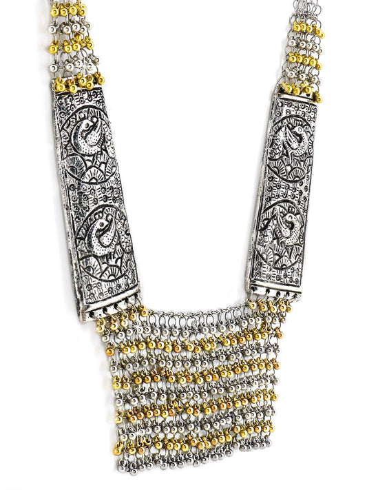 Elegant Traditional Oxidised Silver Necklace for Girls | 60cm | Alloy | Adjustable