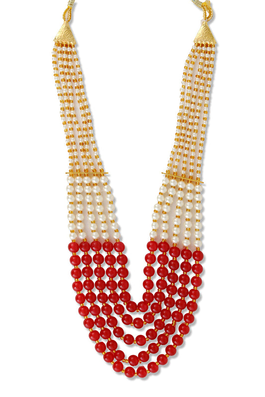 Ethnic Fashion Gold Plated Handmade Beads Long Multilayer Pearl stylish Jewellery Necklace For Women & Girls (Red,White)