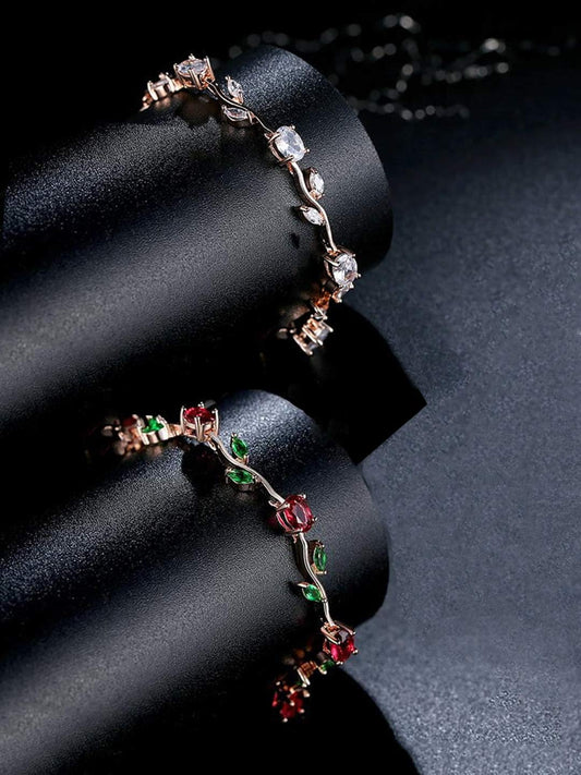 Stylish Rose Gold Plated Multicolor Heart Stones Bracelet for Women and Girls