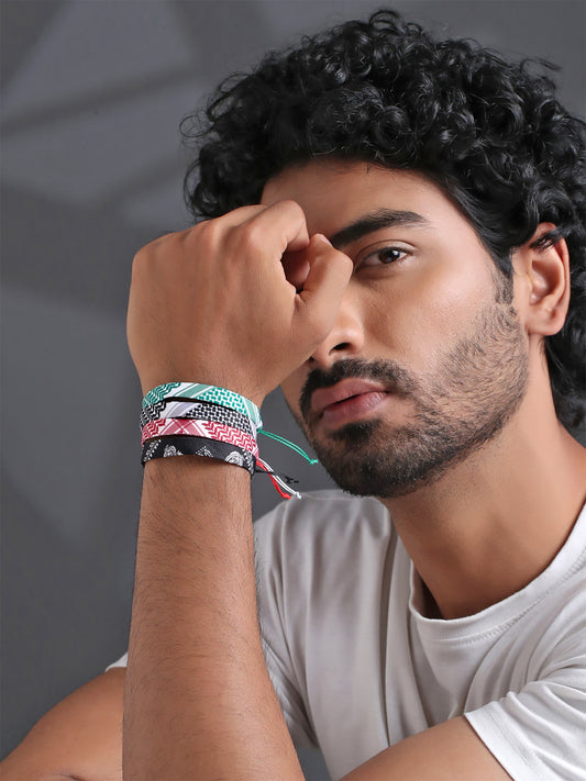 Combo of 4: Multicolor Fabric Wrist Bands for Men | Adjustable | Trendy