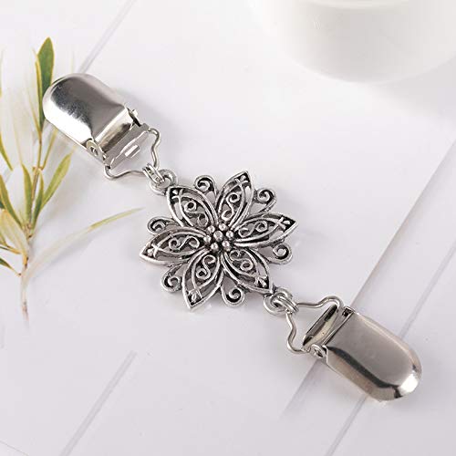 Elegant Cardigan Brooch Sweater Collar Shawl Clip Classic Floral Design Silver Plated Brooch for Women