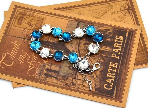 Water Droplets Blue Crystal Charm Bracelet for Women and Girls