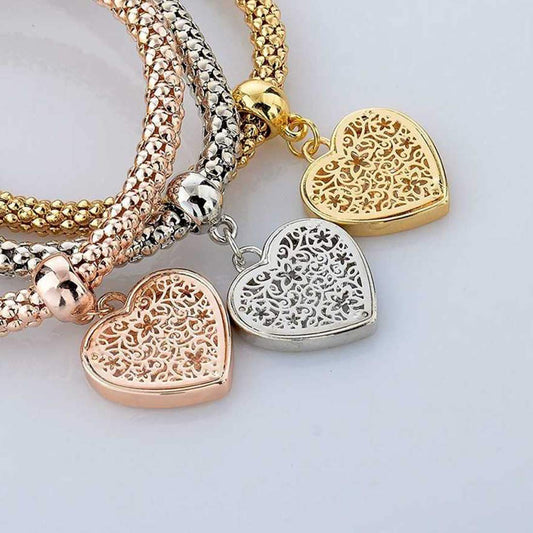Combo of 3 Pcs Stylish Exclusive Heart Shape Rodium Platinum Plated stretchable Charm Bracelet For Women