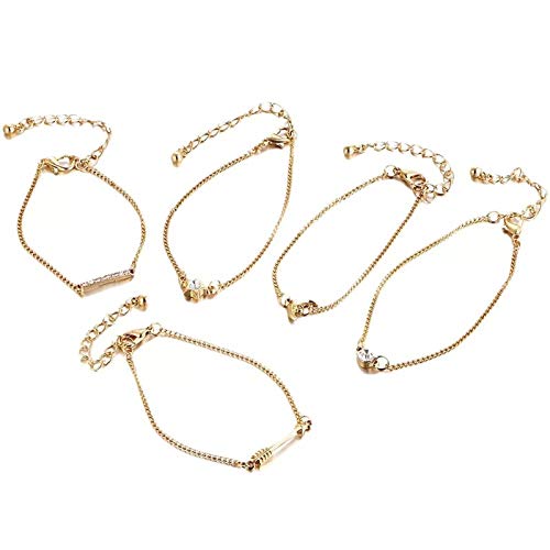 Combo of 5 Pcs/Set Star Moon Arrow and Crystal Chain Gold Plated Charm Bracelet for Women and Girl's