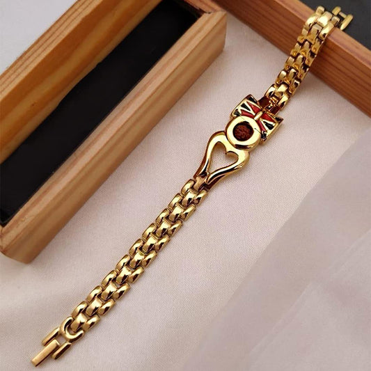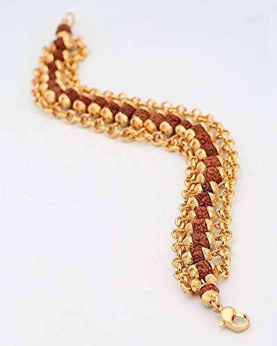 Ethnic Designer Double Layer Gold Plated Rudraksha Chain Bracelet For Men & Boys