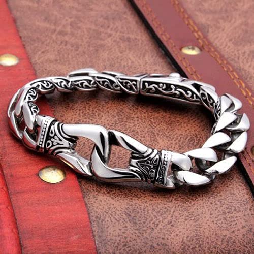 Stainless Steel Curb Chain Design Silver Bracelet for Men and Boys, Medium (Model: YCFJBR-307STDES-SL)