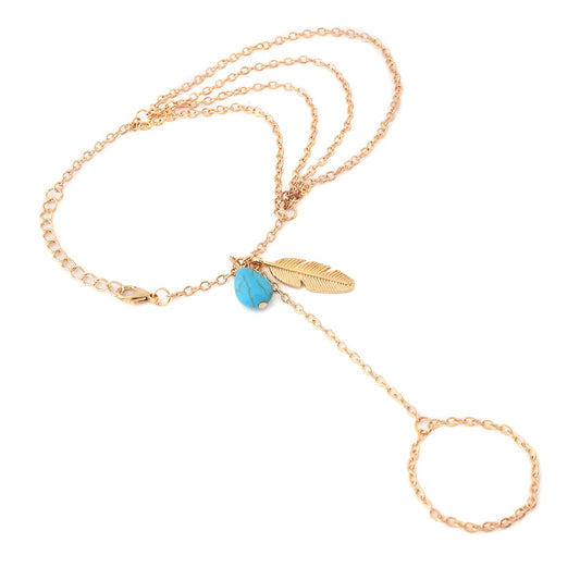 Hand Chain For Women Multilayer Gold Plated Blue Stone Feather Charm Hanging Hand Chain For Women and Girls