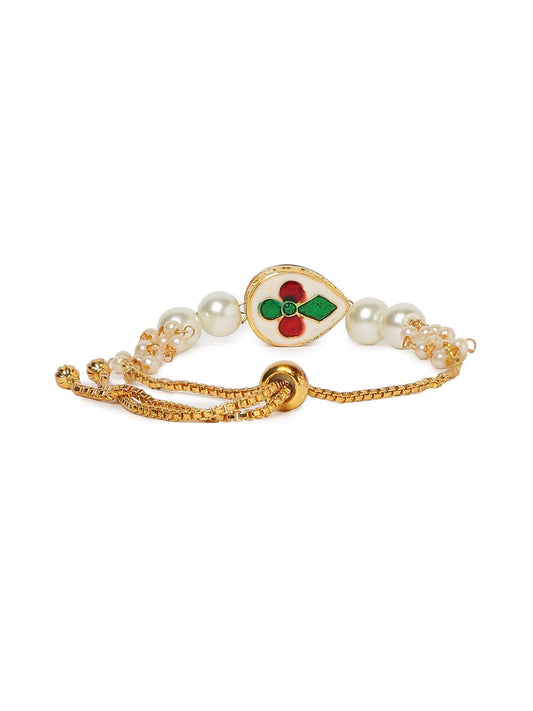 Ethnic Design Gold Plated Handmade White Kundan Studded Moti Bandhani Work Bracelet For women & Girls