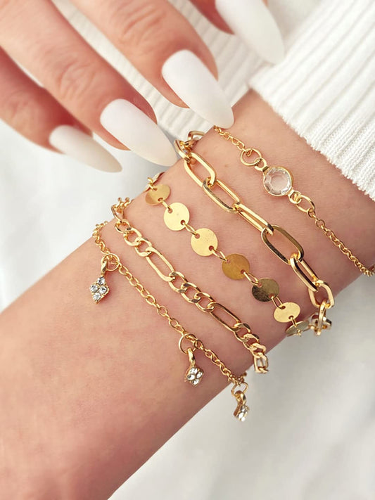 Combo Bracelets for Women Multilayer Chain Gold Plated Combo of 5 Pcs Bracelet Set for Women and Girls