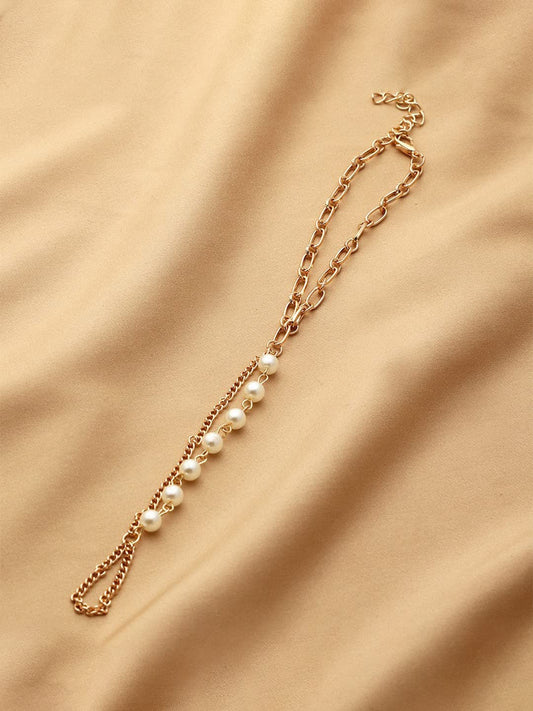 Ring Bracelet for Women and Girls Bracelet With Ring for Girls | Gold Toned Pearl Ring Bracelet | Birthday Gift For Girls and Women