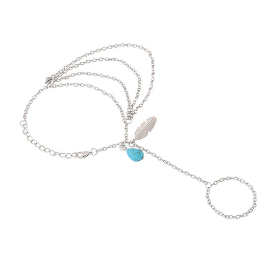 Hand Chain For Women Multilayer Silver Plated Blue Stone Feather Charm Hanging Hand Chain For Women and Girls