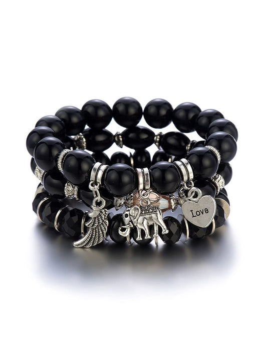 Bracelet for Women and Girls Black Beads Bracelets for Women | Bohemian Style Stretchable Love Charm Beads Bracelet | Birthday Gifts For Women Valentine Gift for Girls